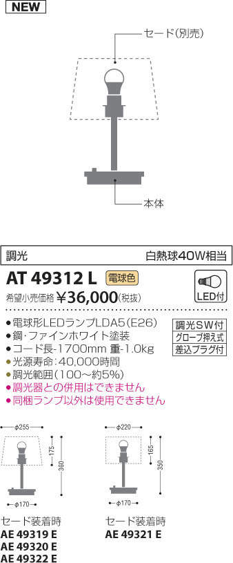●同梱ランプ以外は使用できません