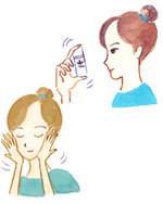 アンチポロン-MKローション(VJ301)の瓶の底に 「アンチポロン-HT(MK粒子)」が沈殿しています。 よく振って(撹拌用のセラミックボールがカチカチ 鳴るくらいまで振ります。) 中心にお顔全体を軽くパッティングするようにして伸ばして下さい。 導入専用「ラメラモイストミルク」(JE303)を適量手の平に 出したっぷりお肌になじませます。強く擦らず、両手の平で 軽く抑えながらなじませて下さい。 |