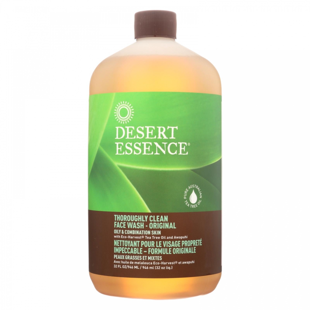 | Desert Essence Thoroughly Clean Face Wash - Original Oily and Combination Skin Description: With Eco-Harvest Tea Tree Oil Same Great Formula We at Desert Essence believe in renewal.