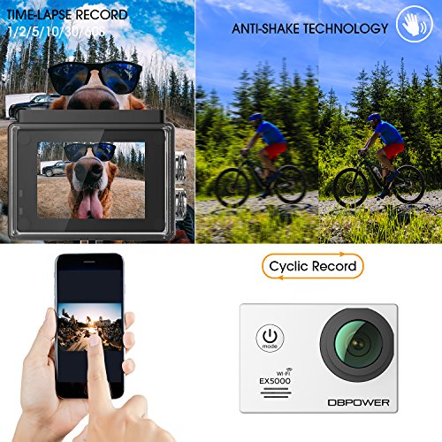 DBPOWER EX5000 Action Camera , 14MP 1080P HD WiFi Waterproof Sports Cam 2 Inch LCD Screen , 170 Degree Wide Angle Lens , 98ft Underwater DV Camcorder With 16 Accessories Kits 59.99 (Sports Camera)