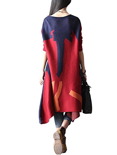-. Title : Minibee Women's Unique Irregular Hem Patchwork Color Knitted Sweater Dress Fit US S-L