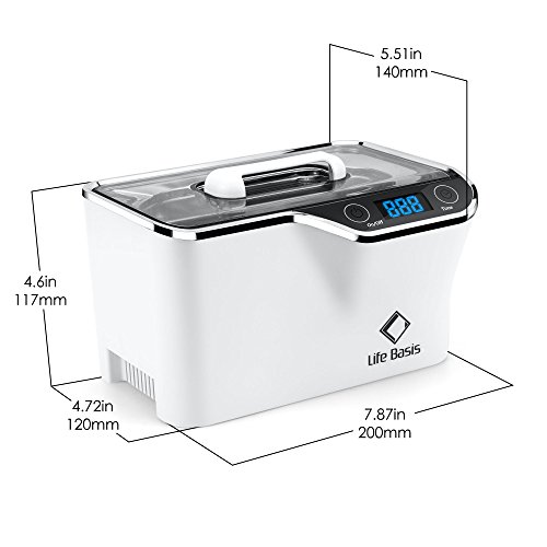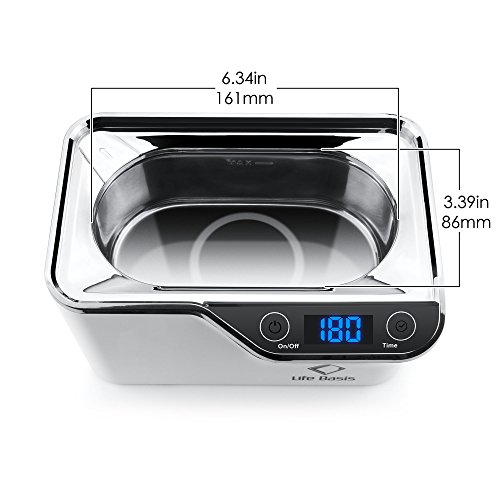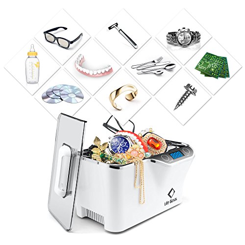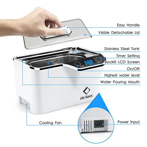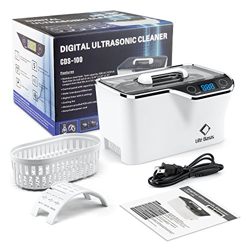 Life Basis Ultrasonic Jewelry Cleaner with Digital Timer and Cooling Fan for Cleaning Eyeglasses, Earrings, Rings, Necklaces, Coins, Razors, Dentures, Combs, Tools, Parts, Instruments