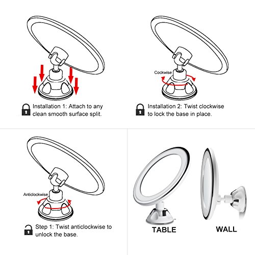POWERFUL SUCTION CUP-Adhere to any flat and smooth surfaces like floor, table, wall, marble, etc. Easy to mount and reposition. Rotate the ball joints at clockwise direction to lock it and pull up it oppositely.