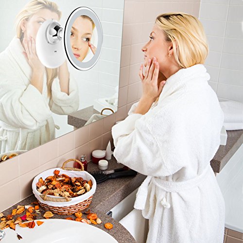 7X Magnifying Vanity Mirrors Bathroom Suction Cup 360° Rotating LED Lighted Makeup Mirror,Battery Operated or USB Cable