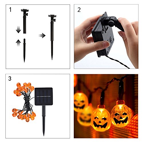 Halloween Pumpkin String Lights - Solarmks Solar Lights Outdoor 20 LED String Lights-Jack-O-Lantern Pumpkin Lights for Halloween ,Patio, Chrsitmas Decorations