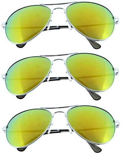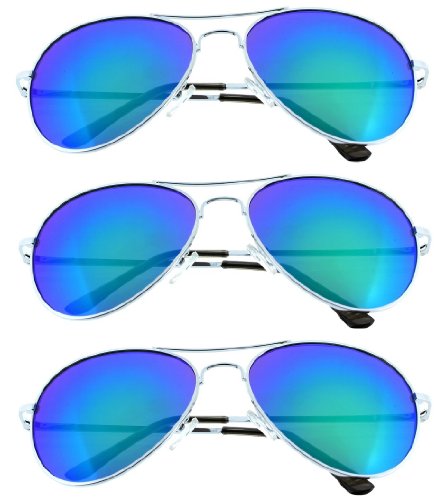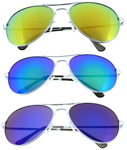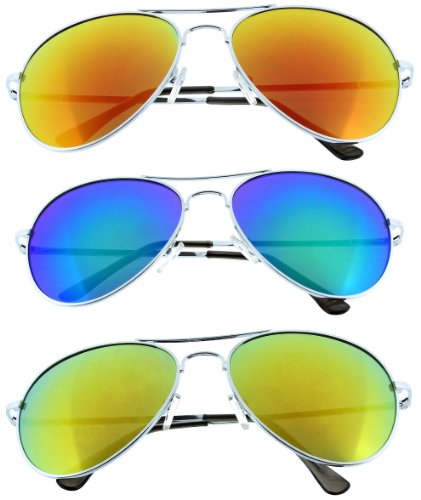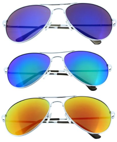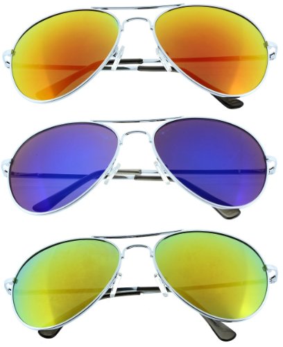 | Classic Silver Mirror and Revo Lens Aviator Sunglasses w/ Spring Hinges |