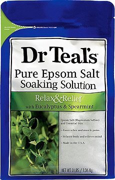 * Mineral Soak Pure Epsom Salt and natural essential oils to revitalize tired, achy muscles, replenish your body's minerals and help provide relief from stress. Pour at least 2 cups of Dr Teals Mineral Soak under warm, running bath water and soak for 20 minutes to soak away discomfort from sore muscles.