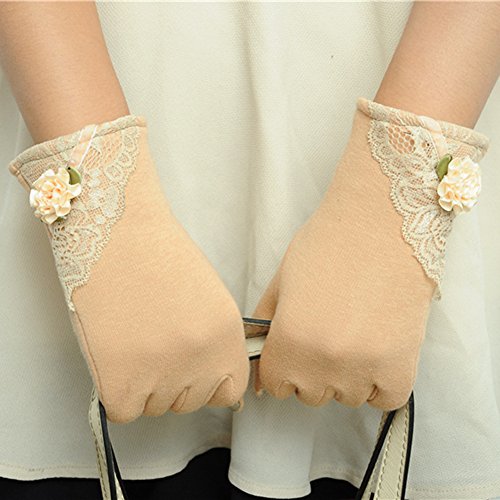 Studio : Gaweb Publisher : Gaweb Binding : Apparel Product Description Type: Gloves Gender: Women's Material: Cotton Occasion: Outdoor Sports, Cycling, Skiing, Indoor, etc Features: Windproof, Touch Screen Function, Warm, Flower Decor, Lace Size: One Size Fits Most