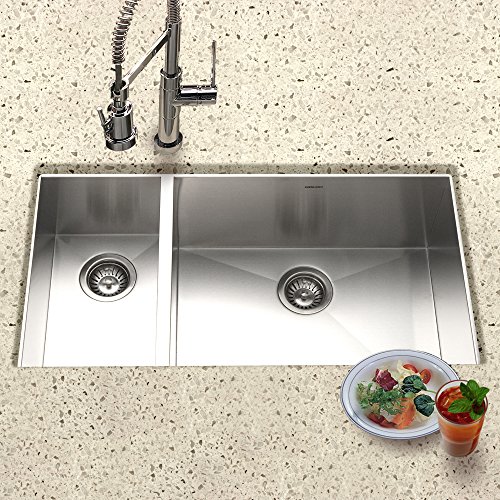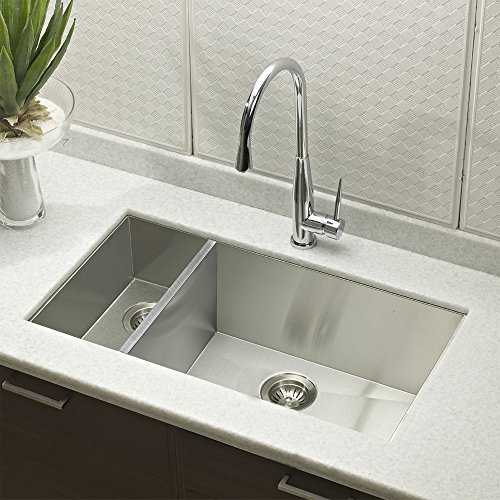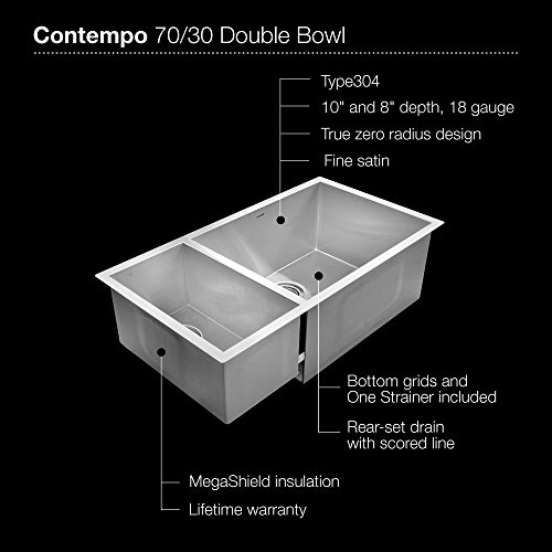 Houzer CTO-3370SL Contempo Series Undermount Stainless Steel 70/30 Double Bowl Kitchen Sink, Prep bowl left