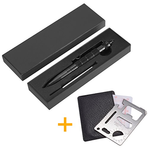 Tactical Pen Aircraft Aluminum Self Defense Pen with Glass Breaker Writing Multi functional Survial Tool (Black)