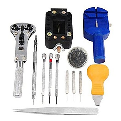 - ★13 pcs watch repair tool: 1 x Set of 18 pins, 1 x Watch Back Case Opener Wrench, 1 x Stainless Steel Tweezers, 1 x Spring Bar Tool, 1 x Link Remover, 1 x Watch Case Holder, 1 x Watch Case Open Knife, 3 Pcs Precision Screwdrivers (1.2mm, 1.4mm, 1.6mm), 3 Pcs Pin Punch (0.8mm, 0.9mm, 1.0mm)