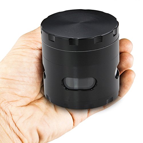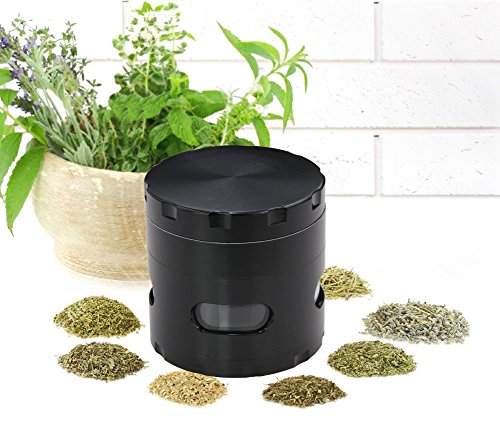 DCOU New Design Premium Herb Grinder 2.2 Inches 4 Piece Spice Grinder with Pollen Catcher Durable Zinc Alloy Herb Grinder Spice Grinder (Black)