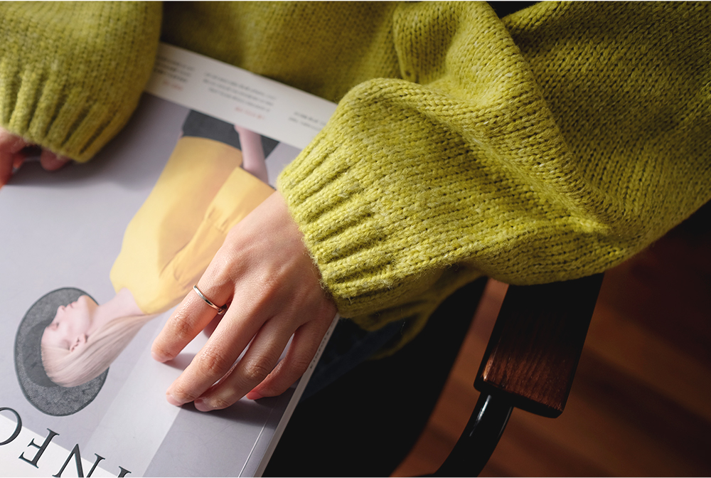 팔 중간까지 내려오는 가오리핏의 숄더라인이 실루엣을