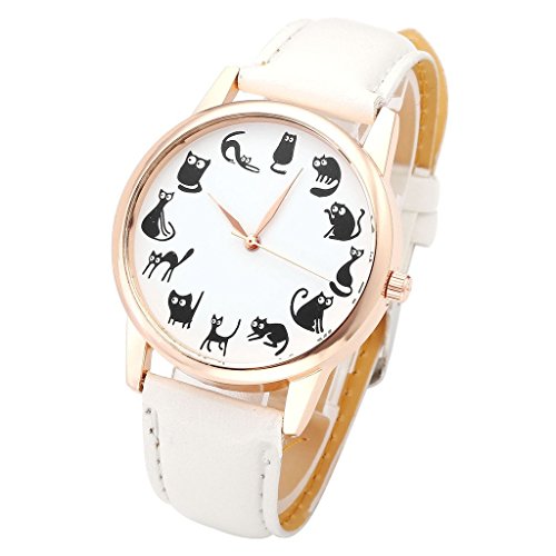 -. Title : Top Plaza Fun Animal Series Twelve Cute Cats Scale Rose Golden Case PU Leather Strap Womens Girls Quartz Wrist Watch,White
