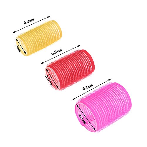 Specifications: Type: Hair Roller Material: Plastics Nylon Color: Rose Red for Large; Red for Middle; Yellow for Small Size of Large Hair Roller: Approx. 4.5 * 6.1cm / 1.8 * 2.4in (D * H) Size of Middle Hair Roller: Approx. 3.6 * 6.2cm / 1.4 * 2.4in (D * H) Size of Small Hair Roller: Approx. 3 * 6.2cm / 1.2 * 2.4in (D * H) Item Weight (15pc): Approx. 87g / 3.1oz