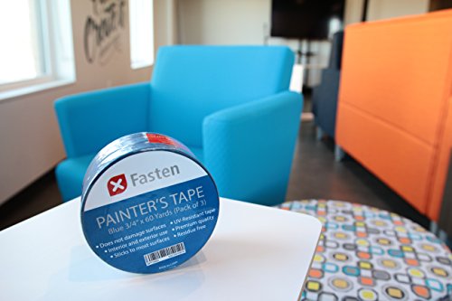 XFasten Professional Blue Painters Tape, Multi-Use, 3/4 Inches x 60 Yards (Pack of 3)