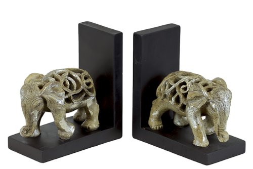 Urban Trends 80145 Decorative CH Resin Elephant Bookend, Champagne Color