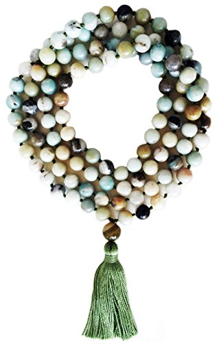 -. Title : Amazonite 108 Bead Stone Hand Knotted Mala Prayer Necklace