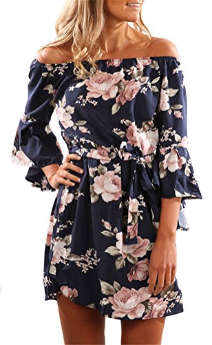 BOCOTUBE Women's Short Sleeve Floral Summer Casual Mini Dress