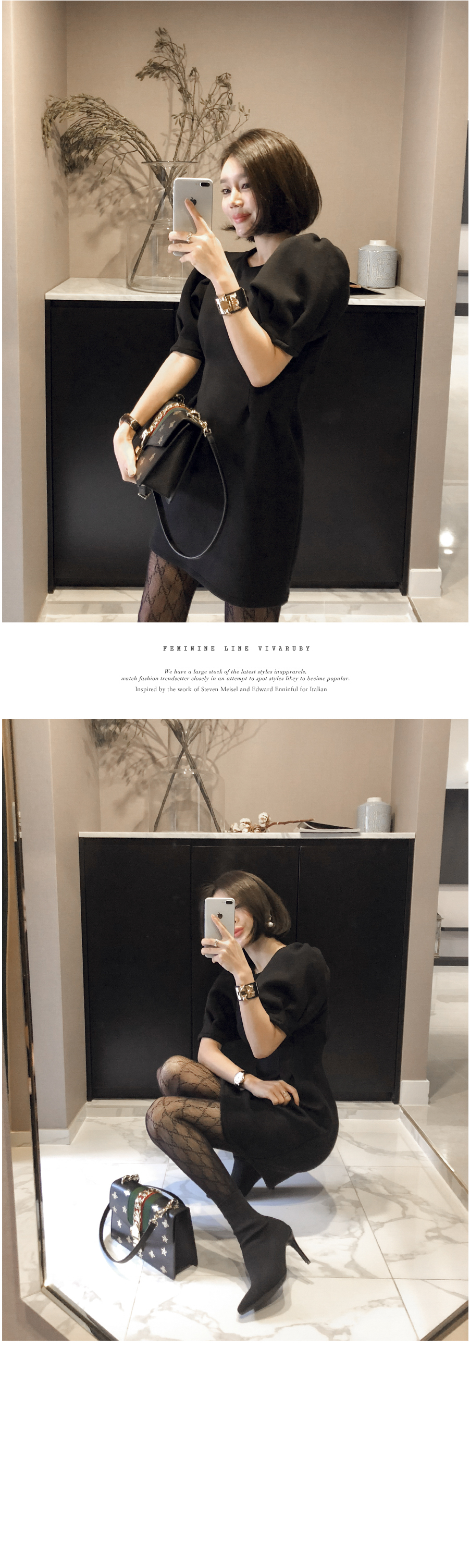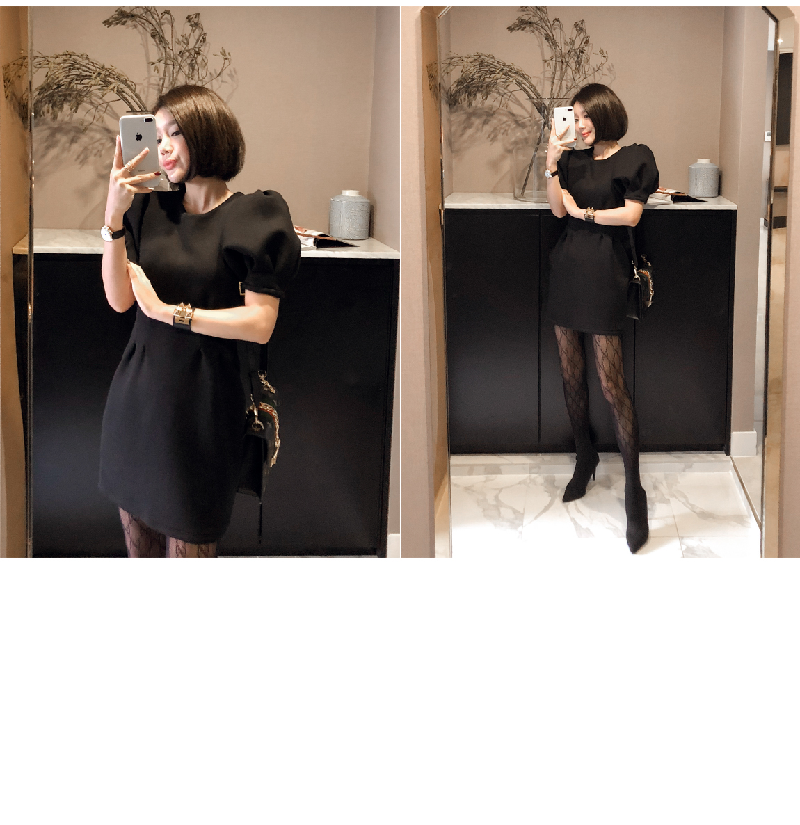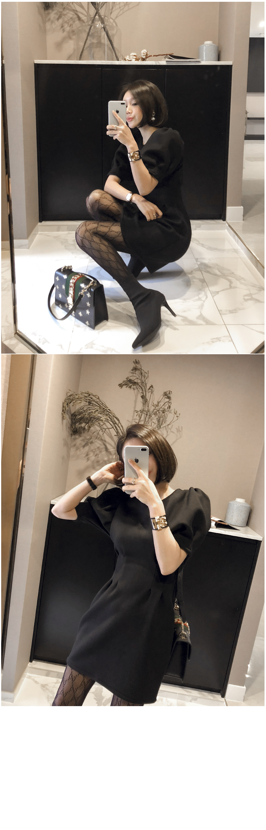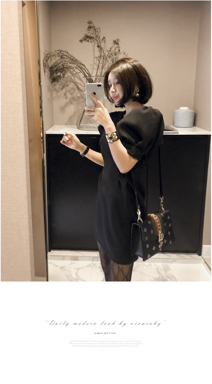 ショルダーにシャーリングとパフでボリューム感のあるシルエットが演出良いと言い