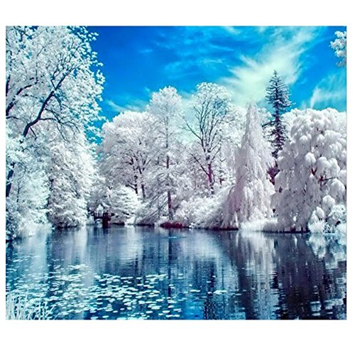 Blxecky 5D DIY Diamond Painting By Number Kits,Lake snow(16X12inch/40X30cm)