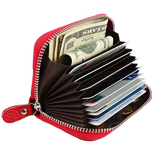 -. Feature : 100% GENUINE LEATHER - our card wallet is made of high quality genuine leather that is very soft and nice to touch. / SAFETY AND PRIVACY - The whole wallets is RFID blocking protection.RFID works preventing thieves from being able to secretly scan your credit card or driver's license info. / COMPACT & HIGH CAPACITY - 10 individual credit card slots, 1 cash slot, the external clear pouch for your driver's license or ID card ,keep your credit card, health insurance cards, all the misc cards well organized. / SUPER STYLISH FOR TRAVEL - compact size: 4.5 * 3 * 1 inch. The credit card wallets fits easily in your back pocket, purse, backpack, bag or briefcase. Great and convenient for the everyday commuter or traveler. / SECURITY ZIPPER - Durable zipper is very smooth and easy to use which runs along the sides to secure all your important cards in one convenient place to keep your cards and money secure.