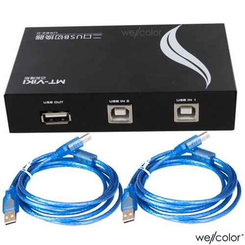 Wellcolor® 10Ft 3 in 1 (1) 2 Ports Printer Sharing Switch Hub Box+(2) 10 Ft USB 2.0 A Male to B Male Cables For Printer Scanner (2P/10Ft-MT)