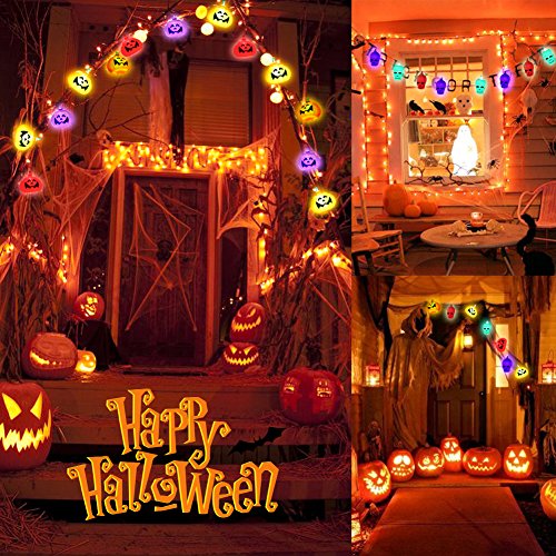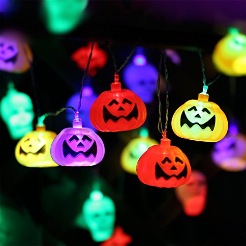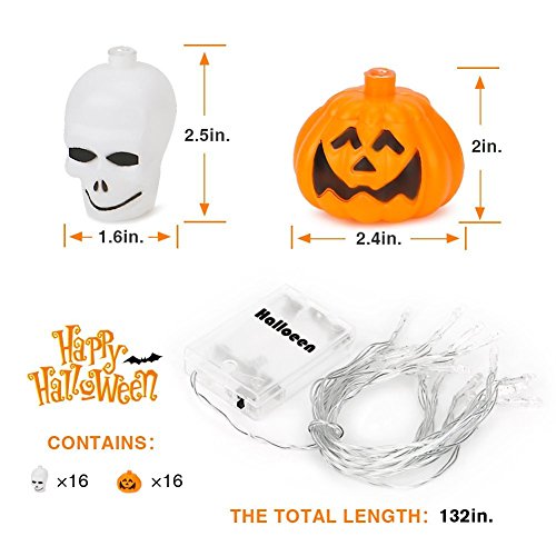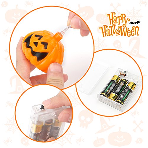 -. Feature : Halloween is approaching, this is one of the seasonal items you must have. / String lights of 16 pumpkins on a well made cord. / Since it is battery operated you will need 3 AA batteries (Not included), it has two modes, first is the LED lights are on and off and the other one is just steady. / The pumpkin light is made out of a hard plastic so you dont have to worry if a kid step on it or even you cant break it. And the good thing about it being battery operated you can place it anywhere around the house or outside£¬These little pumpkin covers are so cute and easy to remove! / Stylish design, a great decoration. Low power consumption with a long service time, safe and reliable. LEDs string light, perfect decoration for Halloween£¬theme parties, carnival, festival, celebration and special occasion.