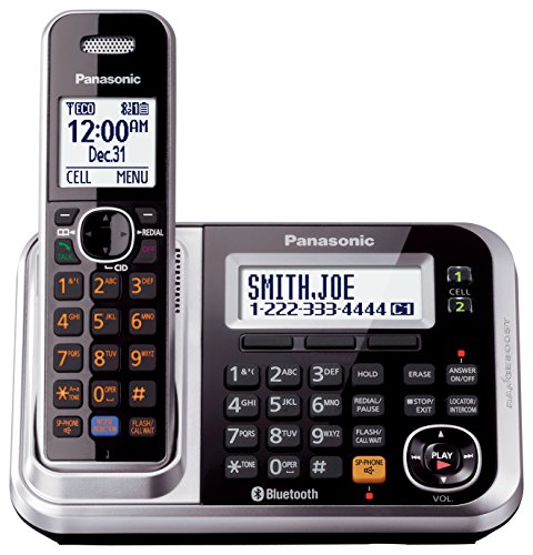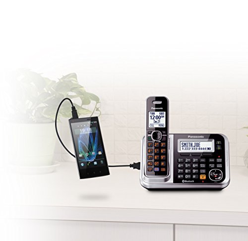 Panasonic Link2Cell KX-TG7875S DECT 6.0 1-Line Bluetooth Cordless Phone with Enhanced Noise Reduction & Digital Answering Machine - 5 Handsets, Black/Silver