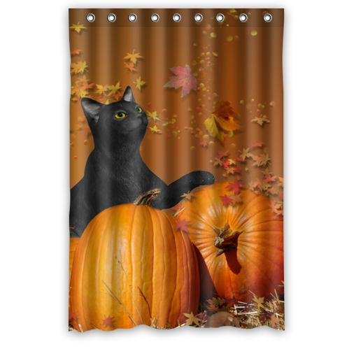-. Title : Home Fashion Decor High Quality Polyester Fabric Shower Curtains With Happy Halloween Pumpkin With Black Cat Pattern P.R.Int,48(w) x 72(h)