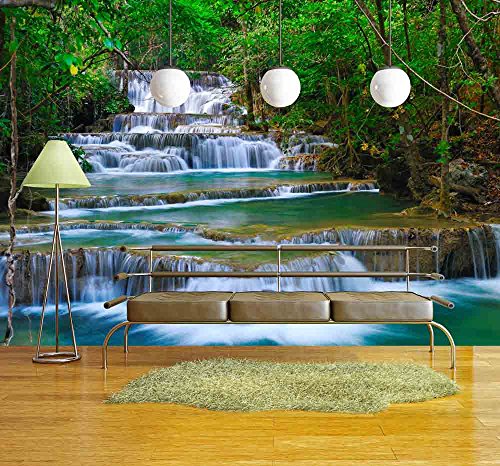 wall26 - Deep Forest Waterfall in Kanchanaburi, Thailand - Removable Wall Mural | Self-adhesive Large Wallpaper - 100x144 inches
