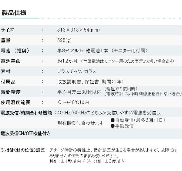時刻を自動で修正する電波時計です。スムーズに動く連続秒針なので、秒針音が気にならない!!電波受信ON/OFF機能付きです。