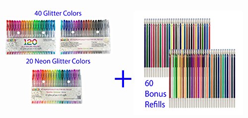 - SPARKLE SHIMMER SHINE: 40 Glitter + 20 Neon Glitter Colors offer a bold & vivid color palette, that will show off your creative side with pizzazz. Our colored pens are great for crafting, drawing, sketching, doodling, coloring books, scrapbooking, notebooks and journals, coloring mandalas & zentangles, writing in your diary, memos, greeting cards, daily planner.