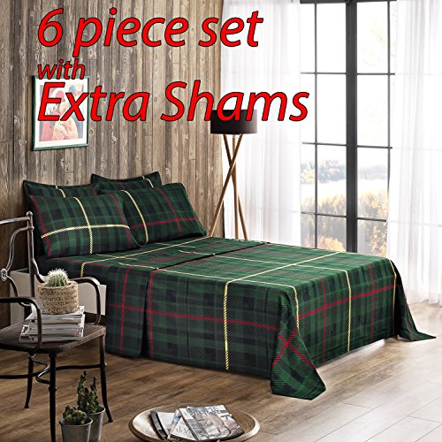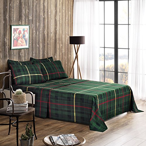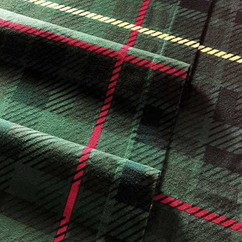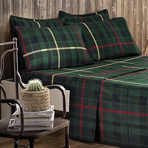 Brielle 100-Percent Cotton Flannel 6 Piece Sheet Set, Queen, Green Plaid