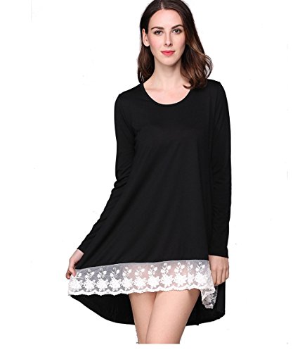 -. Title : レディースLong Sleeve High Low Top Looseフィットチュニックドレスレースパッチワーク