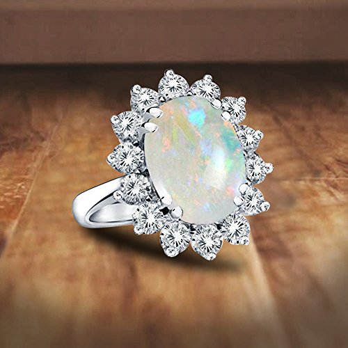 -. Binding : Jewelry -. Brand : Voss+Agin -. Department : womens -. Feature : Genuine oval shape opal with genuine side diamonds / Opal dimensions: 10x8 mm / Diamond total carat weight: .70 ct; Diamond color: H-I-J; Diamond clarity: I1-I2 / 14k White Gold; ring can be resized to specifications;---- MSRP: $3999 / This stunning Opal & Diamond ring exudes Royalty and Class. The natural beauty of the oval shaped Opal is wreathed in a glittering halo of diamonds, and set in 14k White Gold. Hand made and individually hand set by master jewelers. Perfect as an engagement ring or for that special occasion which calls for giving the gift of true elegance -. Label : REL INT'L -. Manufacturer : REL INT'L -. Model : T0ODI3OP -. MPN : T0ODI3OP -. PartNumber : T0ODI3OP -. ProductGroup : Jewelry -. ProductTypeName : FASHIONRING -. Publisher : REL INT'L -. Studio : REL INT'L -. Title : 14k White Gold Genuine Diamond and Opal Ring