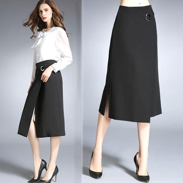 | 【即納】デザイン巻きスカート ミディアム丈 黒 無地 S/M/L[ネコポス不可] 【スカート レディース 女性 黒blackブラック ボトムス リング 巻きスカート スリットスカート お呼ばれ 正装 ブラウスに 入学式 入園式 通勤 モード おしゃれ】 | |