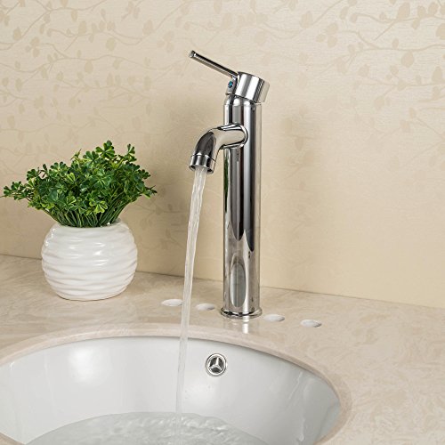 -. Title : LORDEAR Tall Brass Vessel Sink Single Handle Single Hole Chrome Finish Vanity Basin Bathroom Lavatory Sink Faucet, Simple Style Easy to Install Bathroom Sink Faucets