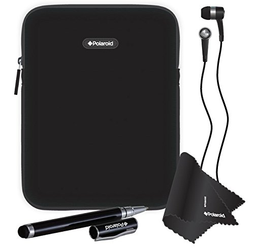 Tablet Accessory 4 Piece Kit Bundle Includes: Tablet Sleeve, Polaroid Earbuds, Stylus Pen & Cleaning Cloth