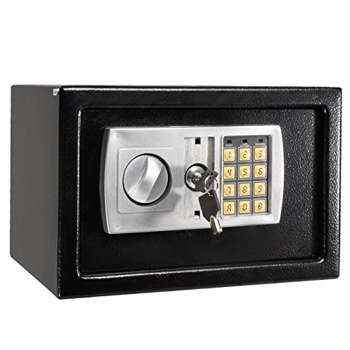 -. Binding : Office Product -. EAN : 6861894577689 -. Feature : Material: Solid Steel 2. Weight: 183.42oz / 5200g 3. Dimensions: (12.20 x 7.87 x 7.87)" / (31 x 20 x 20)cm (L x W x H) 4. Color: Black 5. Model: E20EB 6. Operation: Digital PIN or Override Key 7. Original Code: 159, Then Press A or B 8. Battery Required: 4 x AA-Size 1.5V (Not Included) 9. Time Out Period: After 3 Attempts -. Label : Omega Trading Group -. Manufacturer : Omega Trading Group -. MPN : Omega Trading Group -. PackageQuantity : 1 -. PartNumber : Omega Trading Group -. ProductGroup : Office Product -. ProductTypeName : OFFICE_PRODUCTS -. Publisher : Omega Trading Group -. Studio : Omega Trading Group -. Title : 12.5" Electronic Digital Lock Keypad Safe Box Cash Jewelry Gun Safe New-Black - Constructed with 2mm Thick Solid Steel - Opens with Digital PIN or Included Override Key