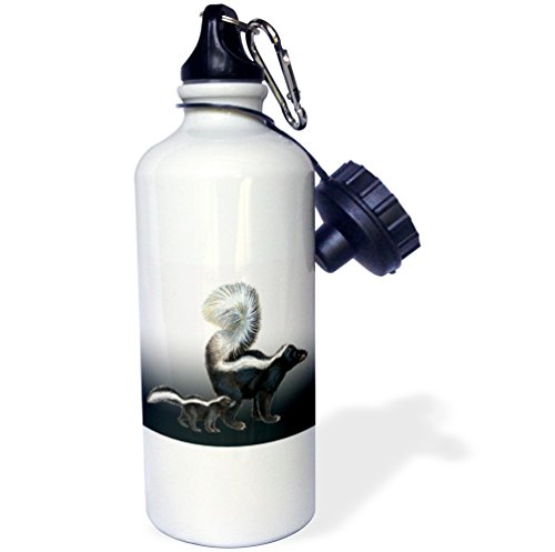 3dRose wb_170880_1 Momma Skunk and Her Baby on a Gradient Blue Gray Background Sports Water Bottle, 21 oz, White