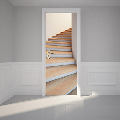 -. Title : Vibola 3D Self Adhesive Door Sticker Ladder Door Wall Sticker Self Adhesive Peel & Stick Repositionable Fabric Murals Wallpaper
