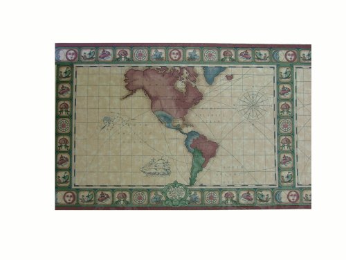 -. Title : Wallpaper Border Map Themed Burgundy