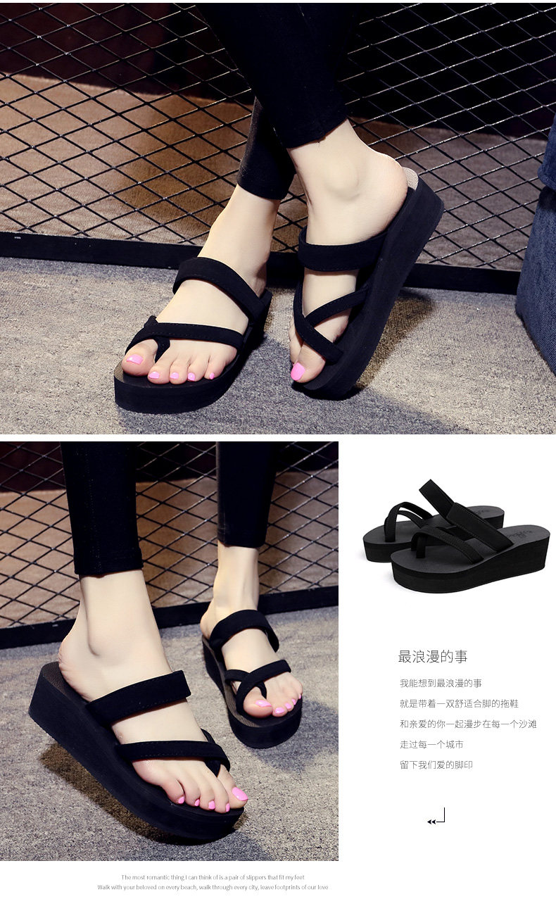 厚底拖鞋女夏韩版外穿高跟凉鞋套趾坡跟平底防滑沙滩鞋凉拖人字拖