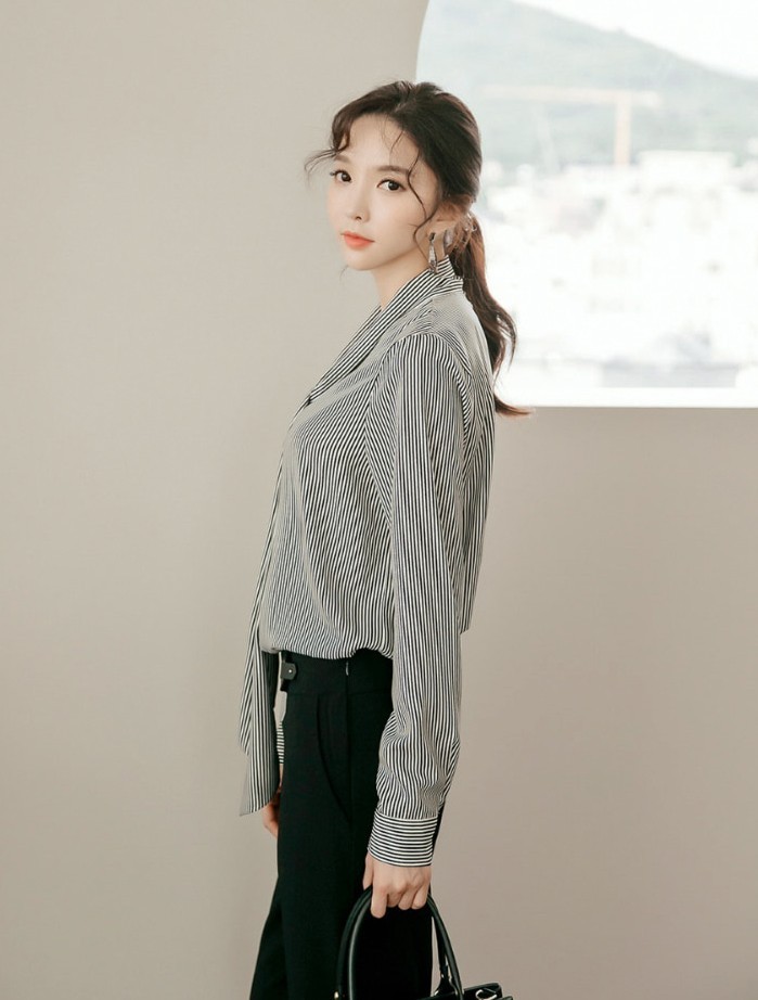 商品名:ブラウス シャツ ピンストライプ 長袖 ボウタイ