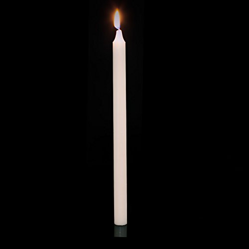 - A display-friendly box of one dozen 12" long wax candles, with pre-cut bottoms that fit most candle holders
