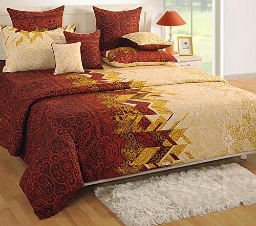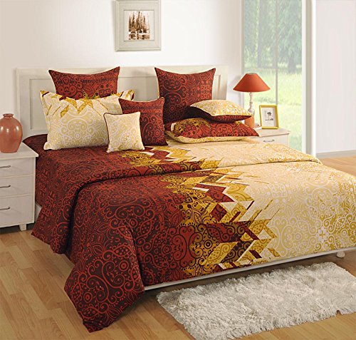 * Yuga Home Decorative Premium Pure Cotton Abstract Print Bedding Set. * Material: Premium Pure Cotton. * Colour: Brown Yellow. * Thread Count: 250 TC. * Sale For: 1 Pack * CARE: Machine wash, Don't Soak, Cold Wash, Dry in Shade. * 100% Colour Fast * Mix and Match/ printed
