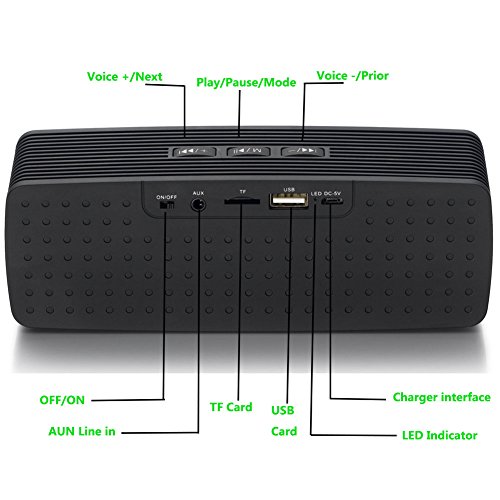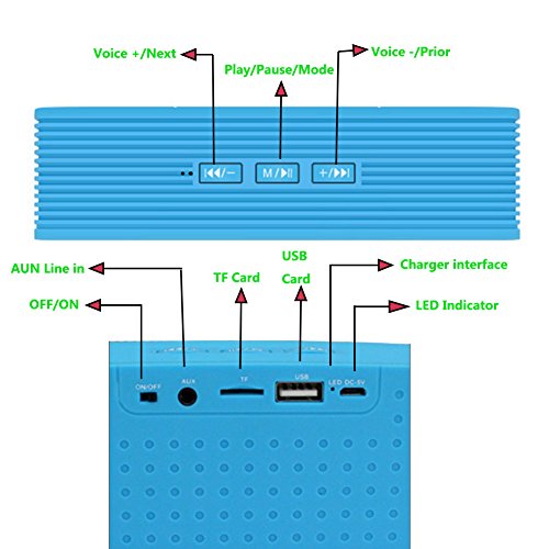 -. Feature : Lightweight but powerful 2-speakers sound system.Small and sleek design for easy portability / Long press the voice-/next button, the voice will reduce,short pressing will next music;Long press the voice +/previous button, the voice will increase, ly it will previous song; / Built-in mic supports hands-free phone calls & outstanding bluetooth connection range of up to 33 feet (10 meters) from any Bluetooth-enabled devices (phones, notebooks, or tablets),If no bluetooth speakers, you can connect them together through the AUX line and use the bluetooth speakers as a amplifie for tablets, iPad and so on; / Bluetooth Speaker Audio,Super Enhanced Bass Resonator, Powerful Sound, For mp3 Player tablet laptop computers iPad Air Mini iPhone 6 5S 5C 5 4S Samsung Galaxy S6 S5 S4 S3 Note 3 4 Nexus 4 5 7 10 HTC One One 2 (M8) Microsoft Surface Pro 3 Kindle Fire Voyage & Paperwhite Motorola Droid LG Optimus Nokia Lumia 520 920 1020 1520 MOTO X G PS Vita 2 LG Blackberry Q10 Z10 Z30 / Good Christmas gift for family and friends;Works with Apple iPhone, iPad and Samsung,LG,SONY Android Phone;PS4 GAME