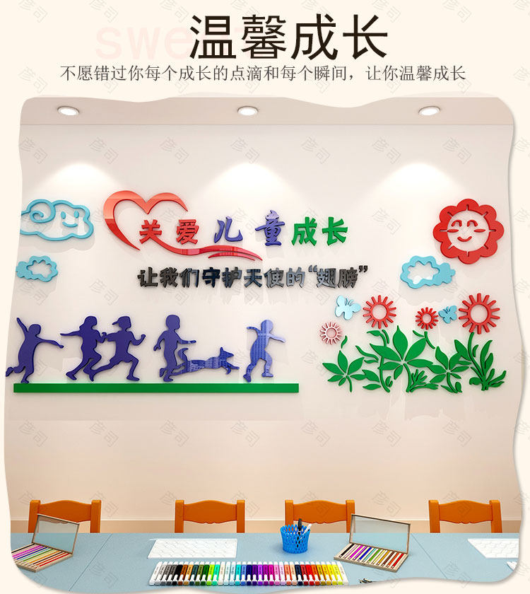 学校教室班级教育机构幼儿园墙面装饰亚克力贴画自粘3d立体墙贴纸