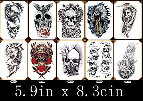 10 Sheets Colorful Half Arm Temporary Paper Sexy Body Tattoo Sticker Water Transfer Tattoo for Professional Make Up Dancer Costume Parties, Shows (HA-04)